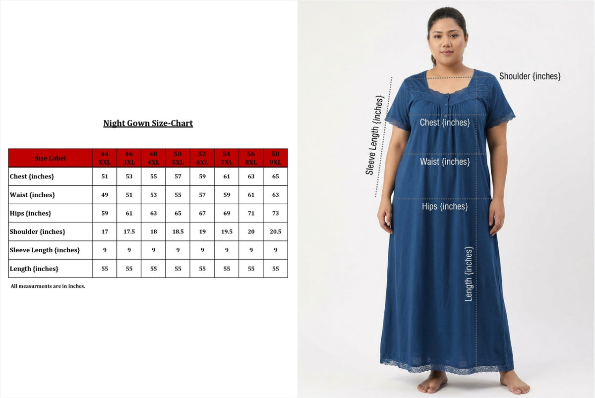 Unwind in style with the Blue Floral Solid Size Cotton Blend Nightgown from Swasti Clothing. This beautifully crafted piece offers a unique blend of comfort and grace. Made from 100% breathable cotton blend, this nightgown is soft and gentle on the skin.