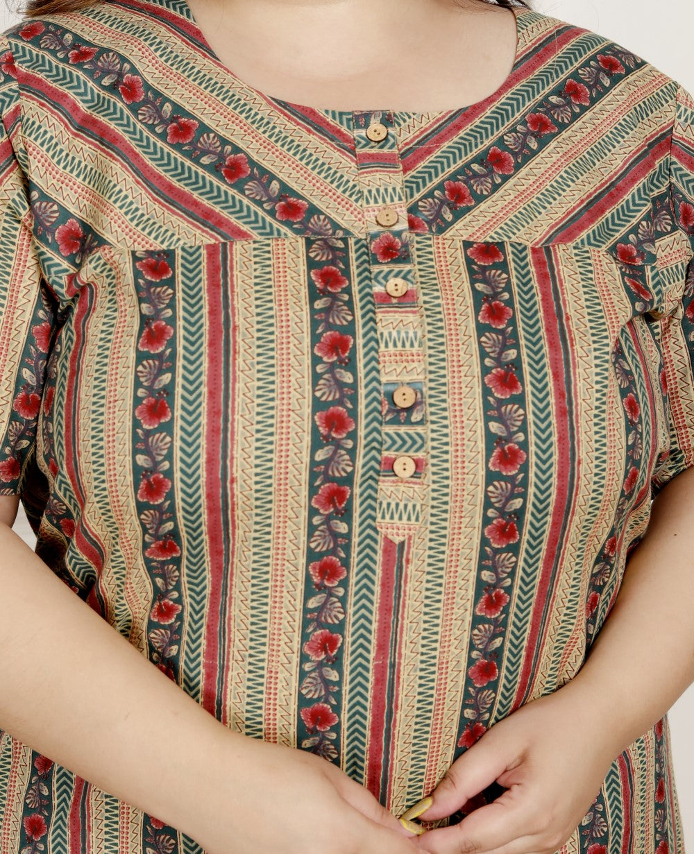 Add the Green Floral Cotton Nightgown to your sleepwear collection today – where comfort meets effortless beauty! 🌿