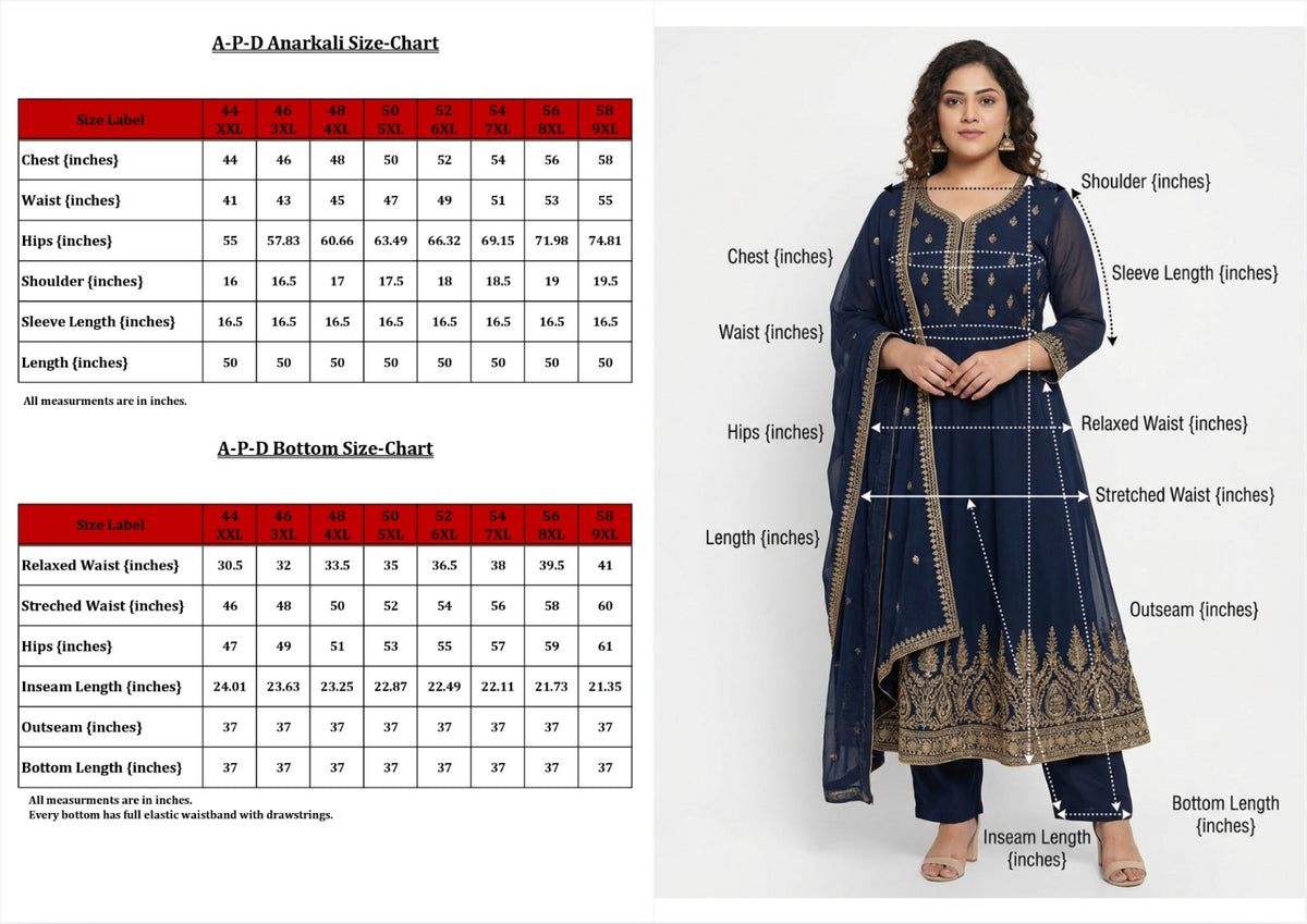 • Length: The ankle-length Anarkali kurta features a graceful flare. This flare helps create a flowy silhouette that flatters all body shapes. It ensures a stylish and flattering fit, perfect especially for plus size figures.