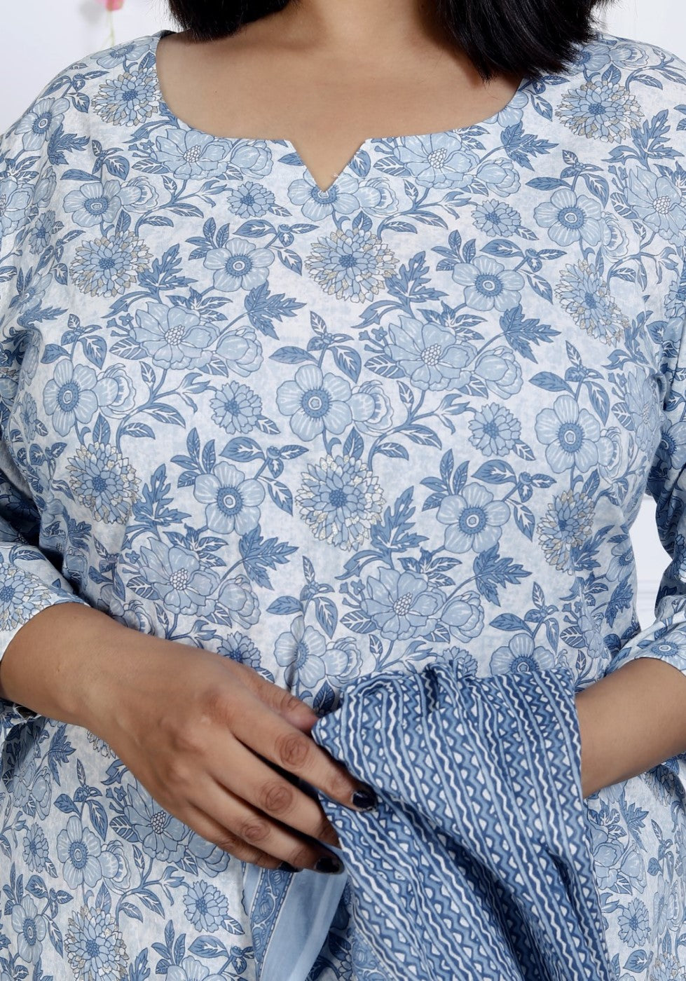This Plus Size Grey Cotton Printed Kurta Pant Set with Dupatta is a perfect blend of comfort and style. The grey color is chic and modern, making it suitable for both casual gatherings and festive events. The floral print adds a refreshing touch, while the breathable cotton fabric ensures you stay comfortable all day long.