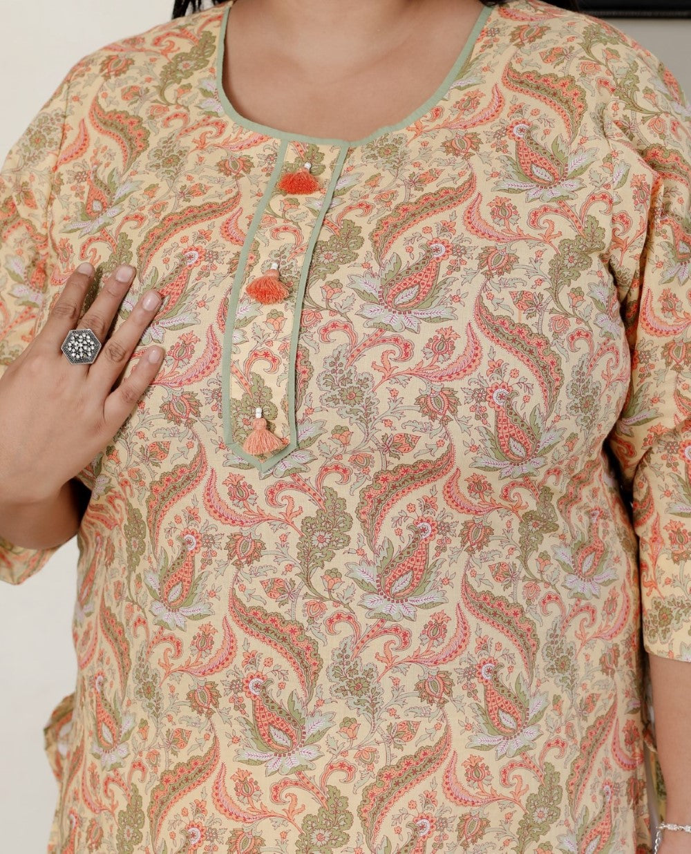 Elevate your style with the Plus Size Multicolor Cotton Floral Print Straight Kurta—a perfect blend of comfort, elegance, and fun. Get yours today and enjoy effortless style!