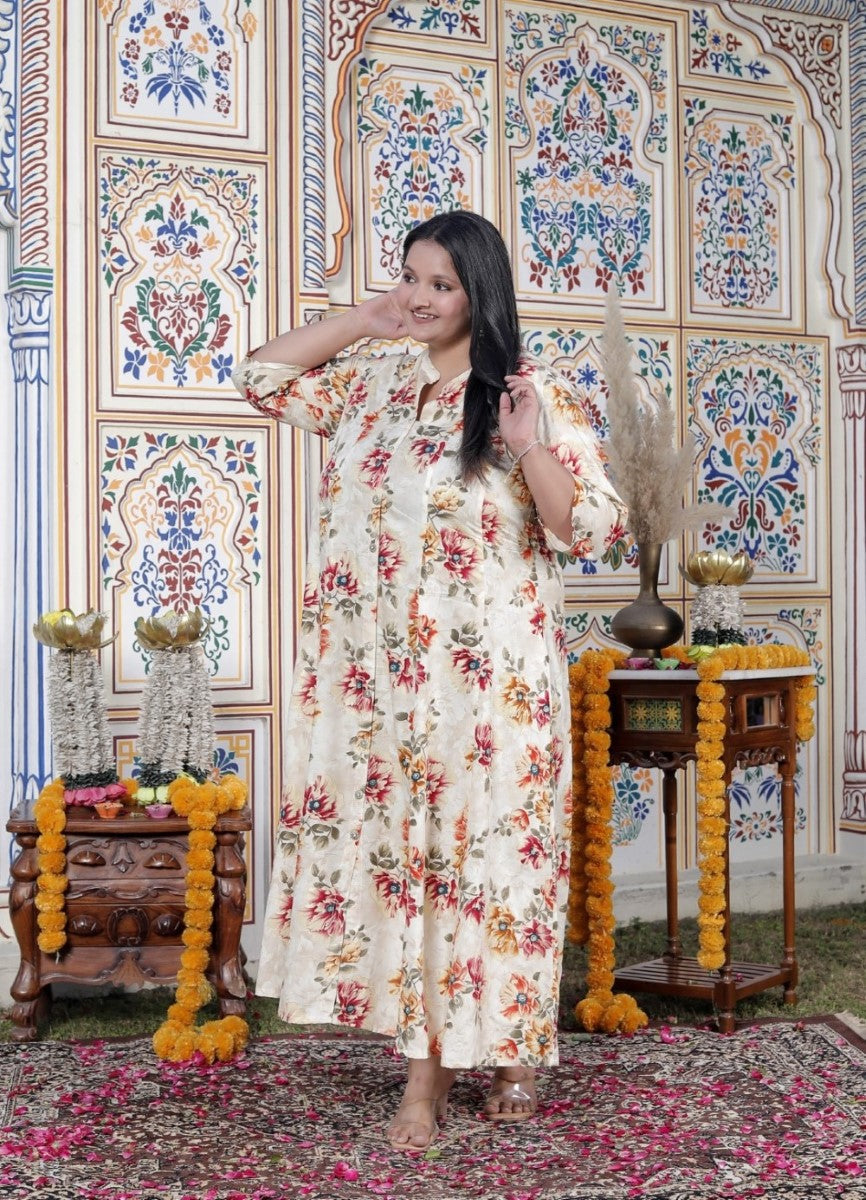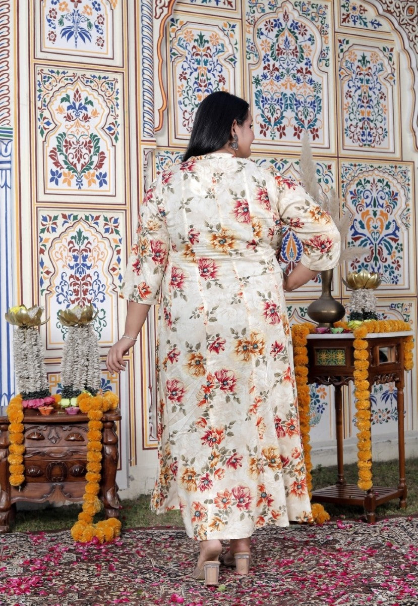 ✨ Elevate Your Style with the Plus Size Off White Cotton Blend Golden Print Aline Kurta! ✨