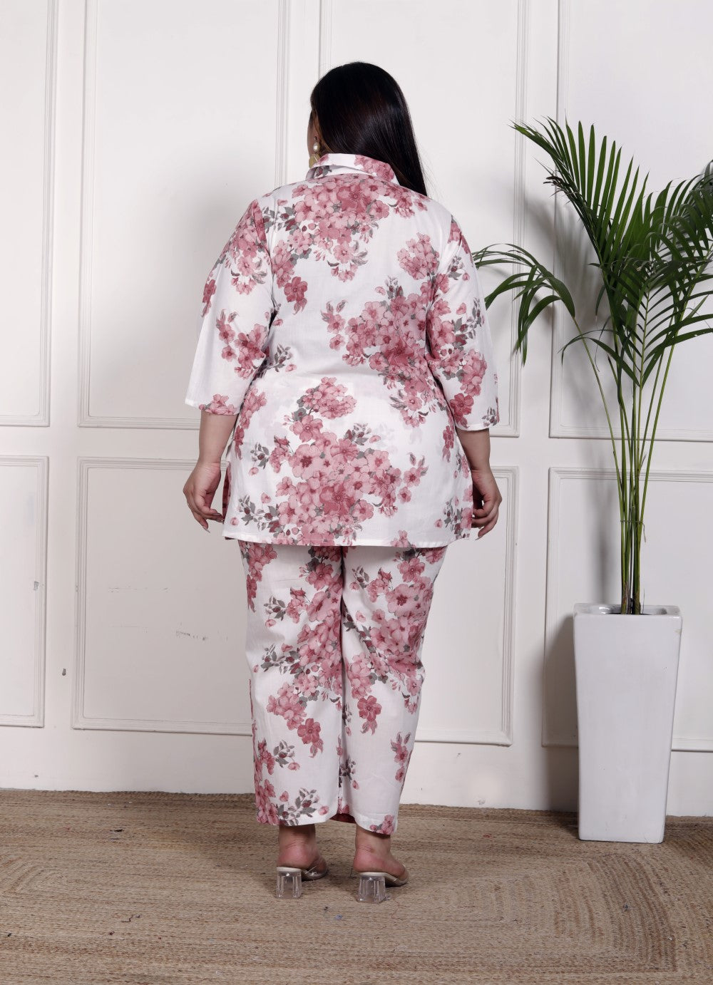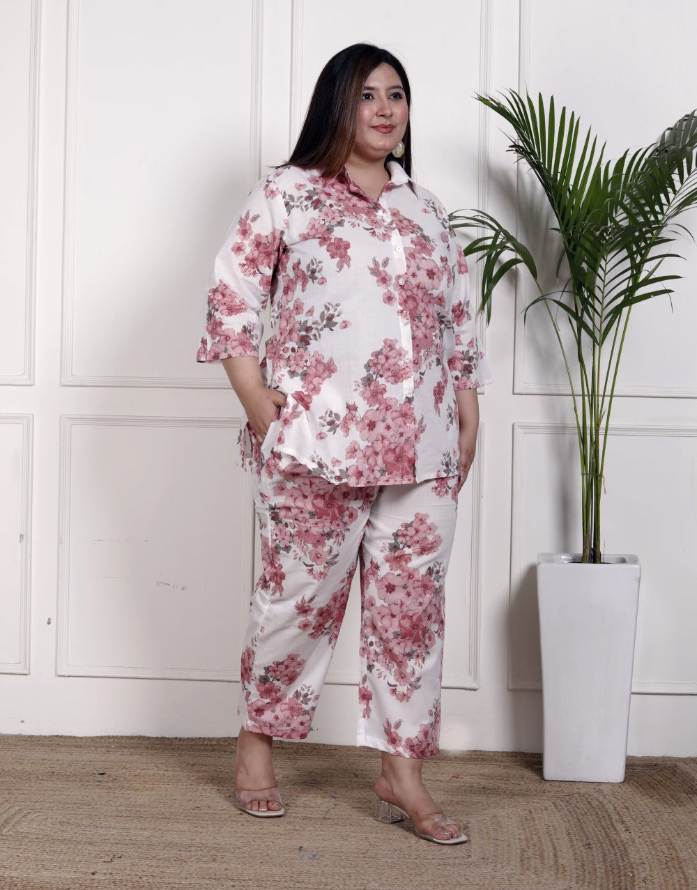 Plus Size Pink Floral Print Co-ord Set – 1200034-Pink
