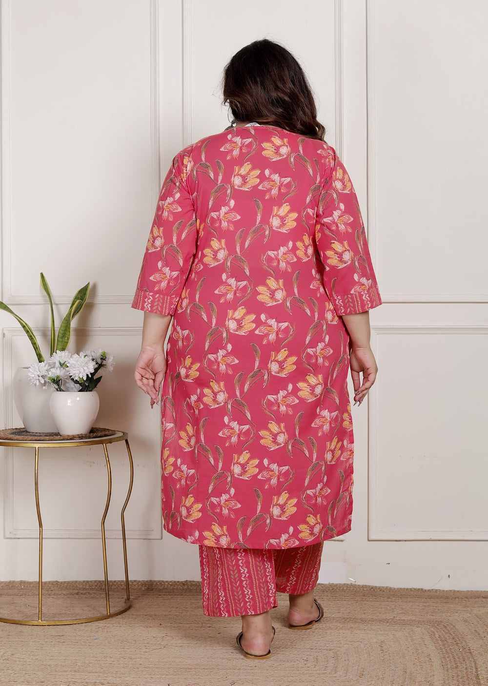 This Pink Cotton Kurta Pant Set is tailored for comfort and elegance. The floral print adds a beautiful touch to the set, while the pink color exudes a cheerful and fresh vibe. Whether for a casual outing or a festive celebration, this set is perfect for any occasion.