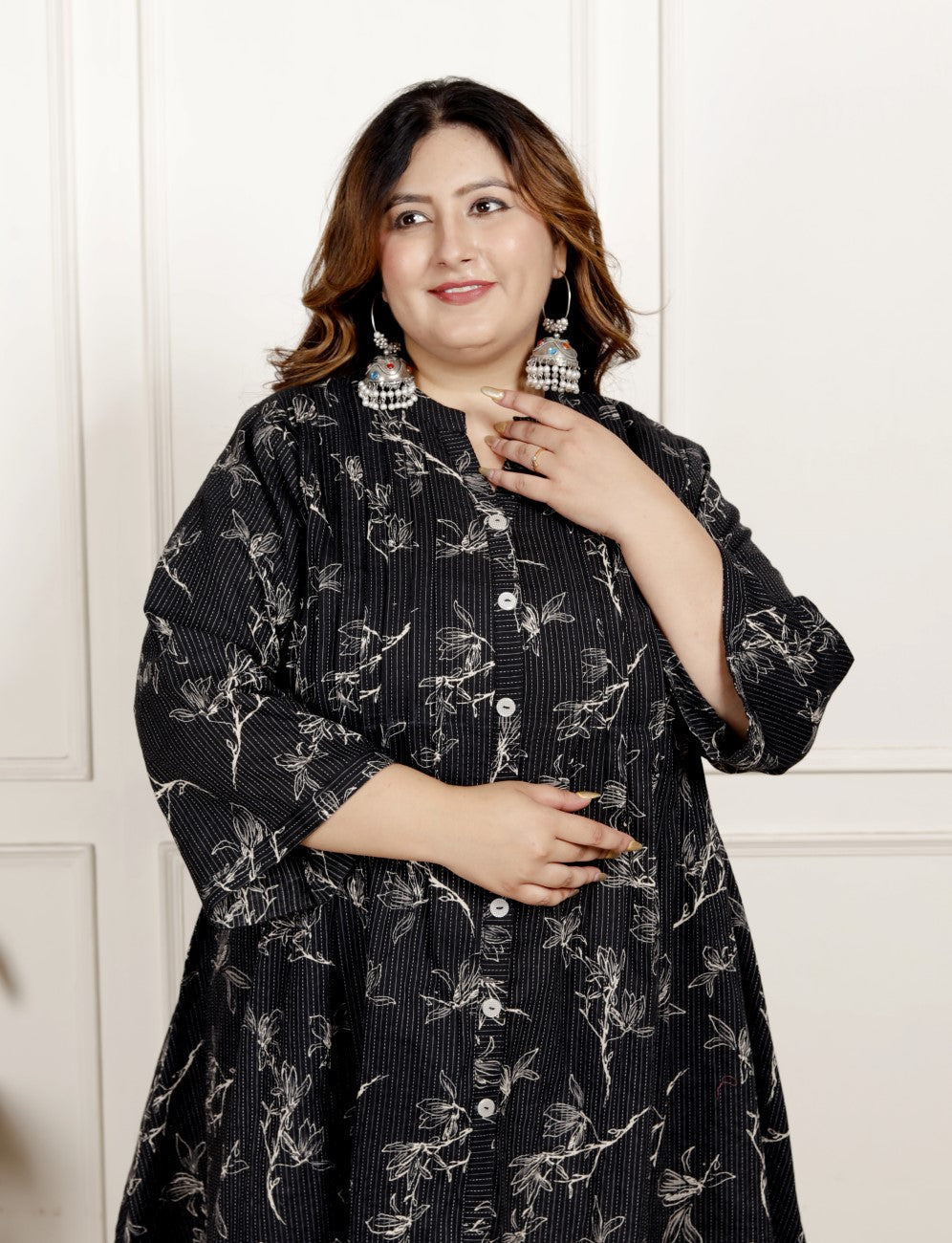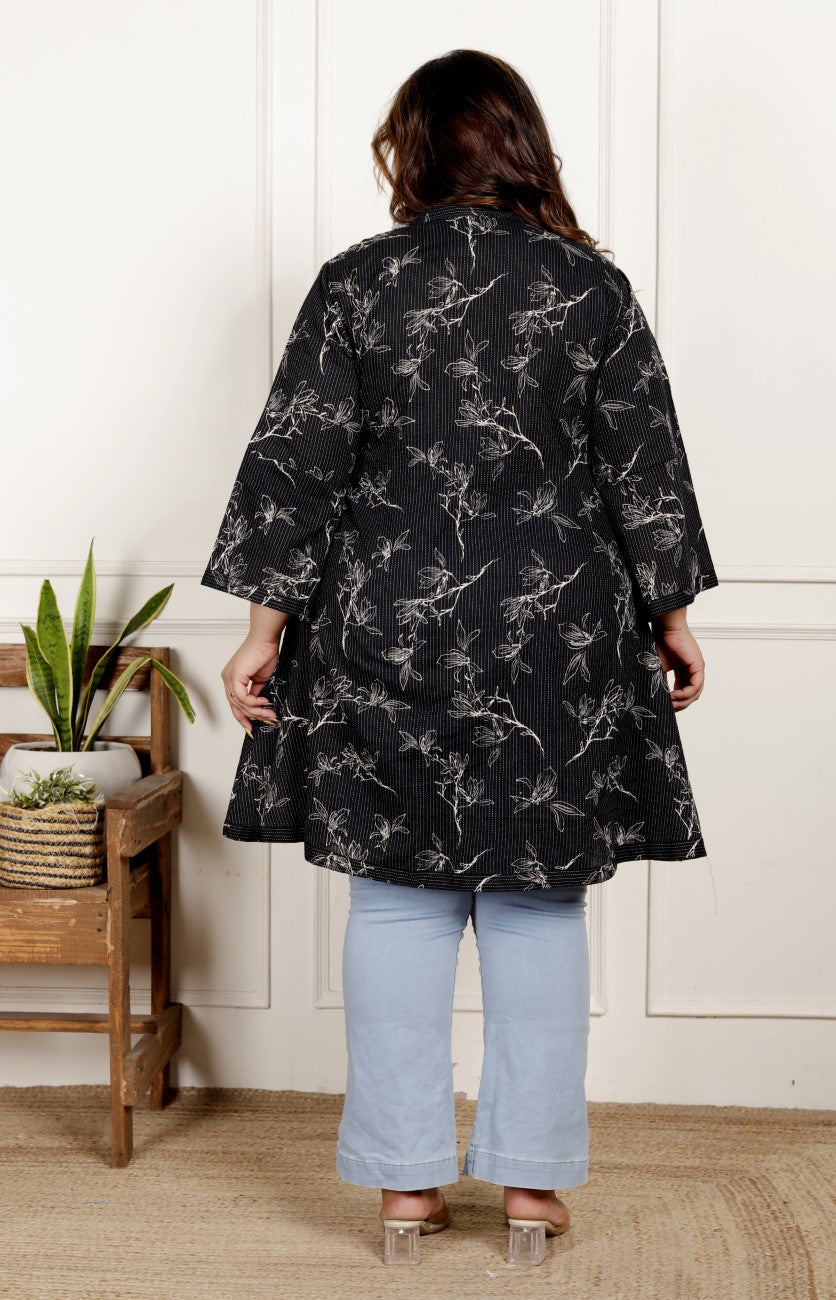 Elevate your wardrobe with this Plus Size Black Cotton Floral Print Tunic & Top, a perfect blend of style, comfort, and elegance. Crafted from high-quality cotton, this tunic features a sophisticated floral print in shades of black, adding a timeless elegance to your look. Designed with plus-size women in mind, this tunic offers a flattering fit and accentuates your curves beautifully.