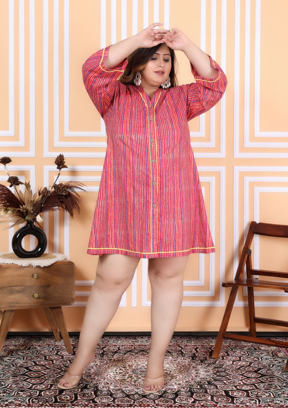 • Pack of: 1 x Plus Size Printed Women Pink Tunic Dress.