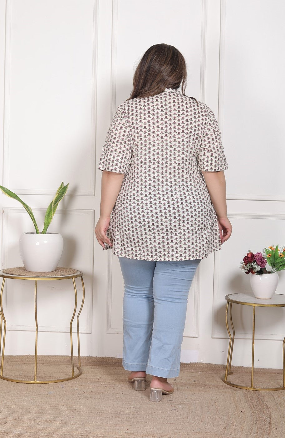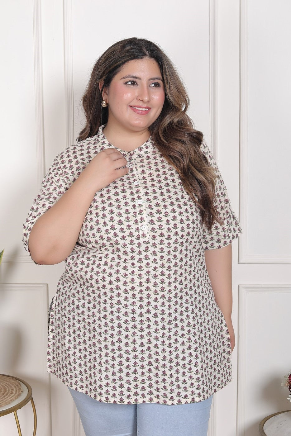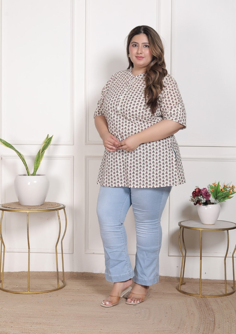 🌼 Plus Size White Cotton Printed Short Kurta – Effortless Style & Comfort 🌼