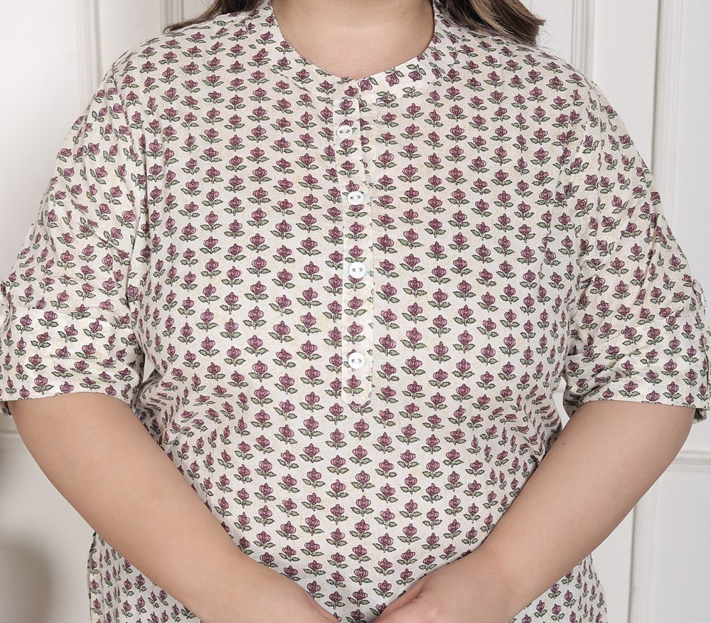 Elevate your everyday look with the Plus Size White Cotton Printed Short Kurta, designed for comfort and style. Crafted from soft cotton fabric, this kurta offers a lightweight and breathable fit, perfect for casual wear throughout the day.