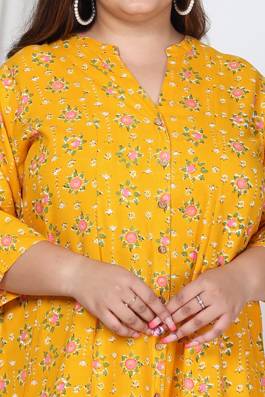 Upgrade your wardrobe with this stunning ankle-length kurta that combines elegance, comfort, and effortless charm. Designed with a vibrant floral print, this flared gown-style kurta is a must-have for every fashion-forward woman.