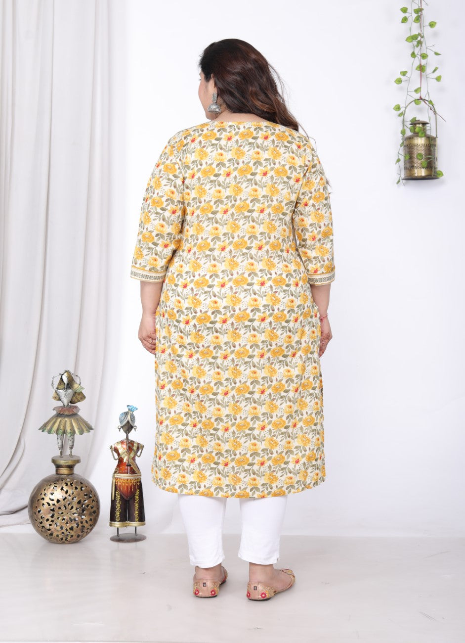 Plus Size Yellow Cotton Floral Print Straight Kurta